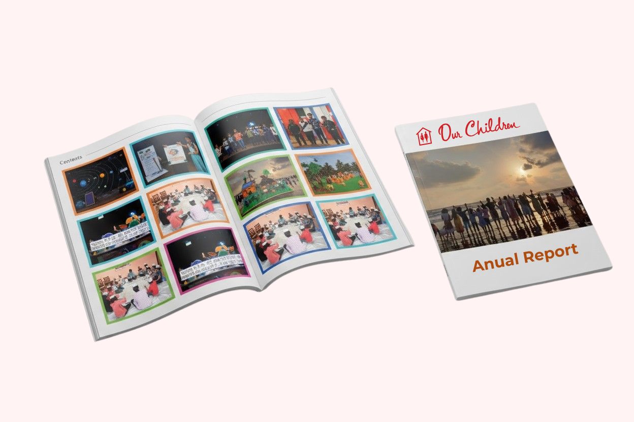 Our Children (OC) stands devoted to bringing love, joy, and dignity into the lives of underprivileged children. Born in 1970 from a simple act of sharing food, OC has since grown into a nurturing family that empowers children with education, life skills, and opportunities to discover their true potential. The Annual Report 2023-24 captures heartfelt journeys of hope and transformation from child welfare institutions across Mumbai. These stories reflect OC’s enduring belief that every child deserves a chance to dream, to grow, and to experience the fullness of childhood.